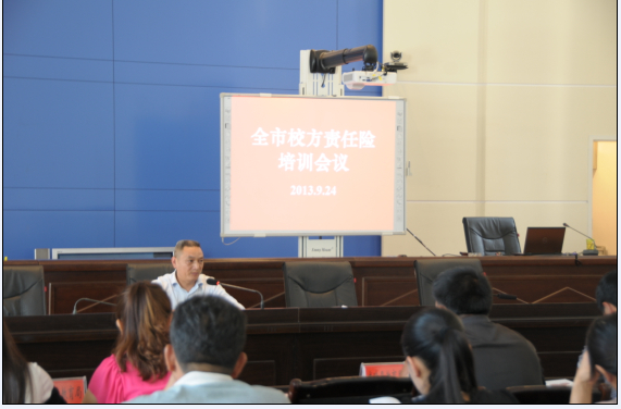 保山市校方責(zé)任保險(xiǎn)培訓(xùn)會議于2013年9月24日在保山市教育局大會議室召開。各縣(區(qū))分管校方責(zé)任保險(xiǎn)工作局領(lǐng)導(dǎo)、負(fù)責(zé)校方責(zé)任保險(xiǎn)工作的業(yè)務(wù)人員、市直各校分管校方責(zé)任保險(xiǎn)工作校領(lǐng)導(dǎo)、負(fù)責(zé)校方責(zé)任保險(xiǎn)工作的業(yè)務(wù)人員、市教育局辦公室、安全科和基教科有關(guān)人參加了此次培訓(xùn)。我公司業(yè)務(wù)部、重點(diǎn)客戶部經(jīng)理參加會議,并做了培訓(xùn)。培訓(xùn)內(nèi)容包括:自然災(zāi)害應(yīng)急處理能力培訓(xùn)、學(xué)校安全事故案例分析、學(xué)校食品安全監(jiān)管培訓(xùn)、校方責(zé)任保險(xiǎn)工作介紹及投保、理賠工作流程。